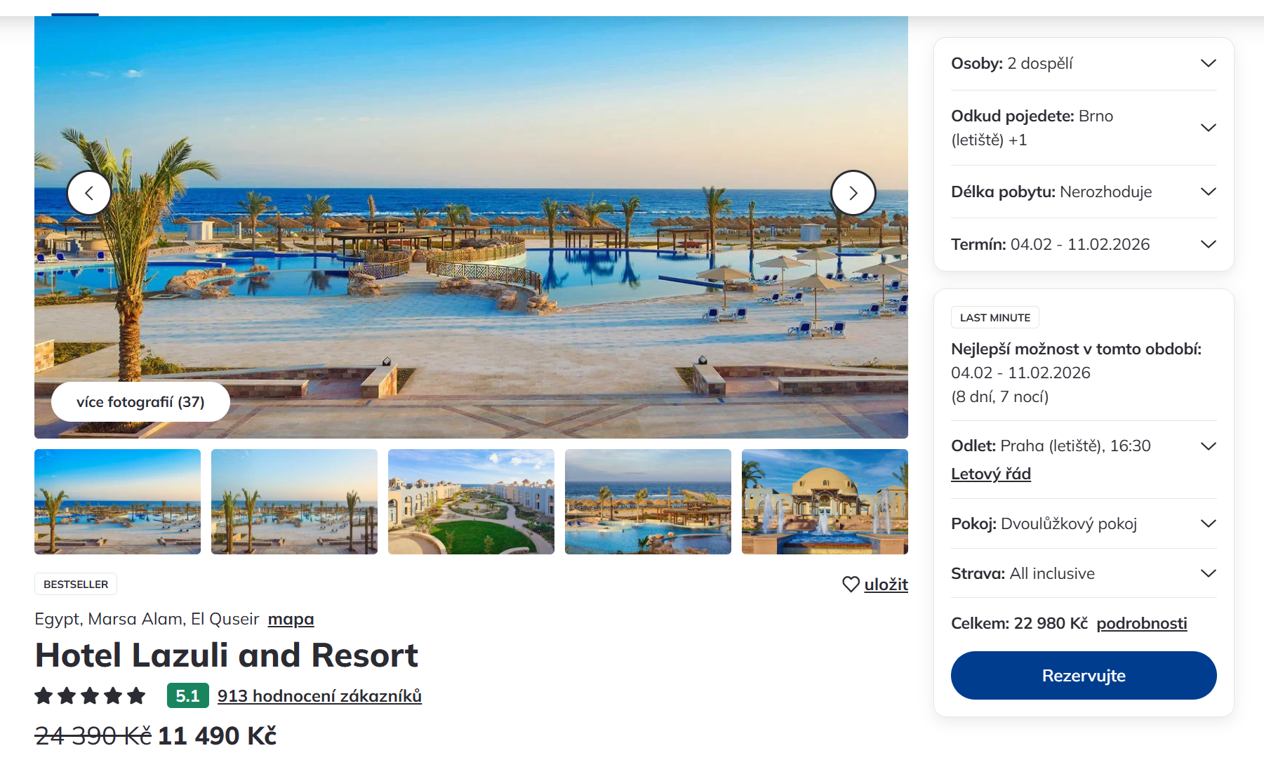Vydejte se za necelý týden z Prahy do Egypta. Velmi dobře hodnocený 4-hvězdičkový hotel je umístěn v letovisku Marsa Alam hned u pláže. Dovolená na 8 dní (7 nocí) s odletem z Prahy a s all inclusive vás vyjde na 11 490 Kč. Zájezd je v termínu od 4. - 11.2.2026. Zájezd