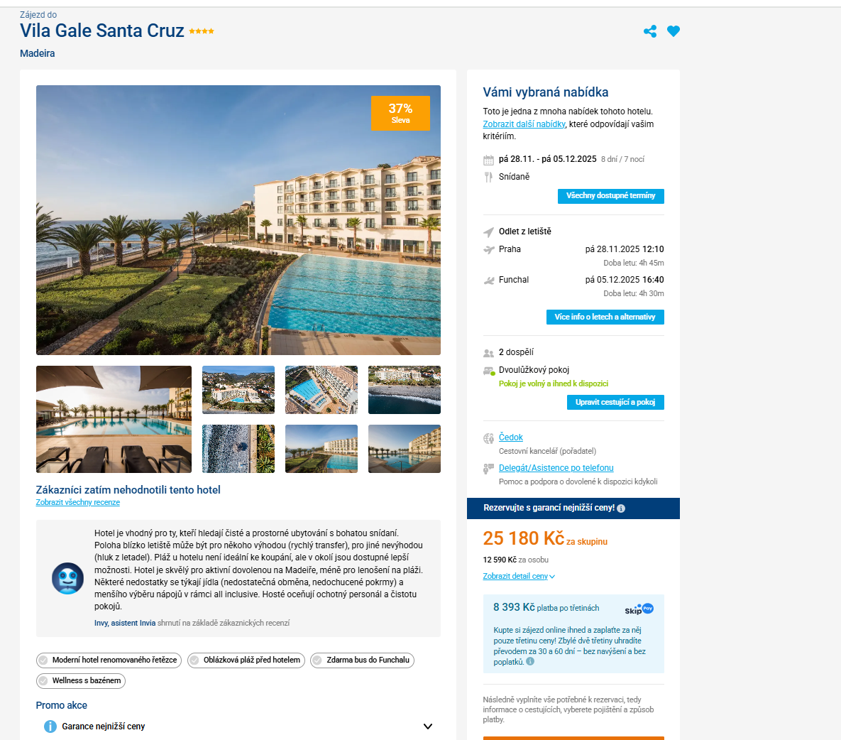 Vydejte se na přelomu listopadu a prosince na aktivní dovolenou na Madeiru. Zájezd z Prahy do dobře hodnoceného 4-hvězdičkového hotelu, který se nachází přímo u oceánu a pobřežní promenády, zakoupíte na 8 dní (7 nocí) za 12 590 Kč. V ceně je snídaně. Hotel má vyhřívaný bazén a SPA. Zájezdy jsou v termínu od 28.11. - 5.12. 2025. Zájezd