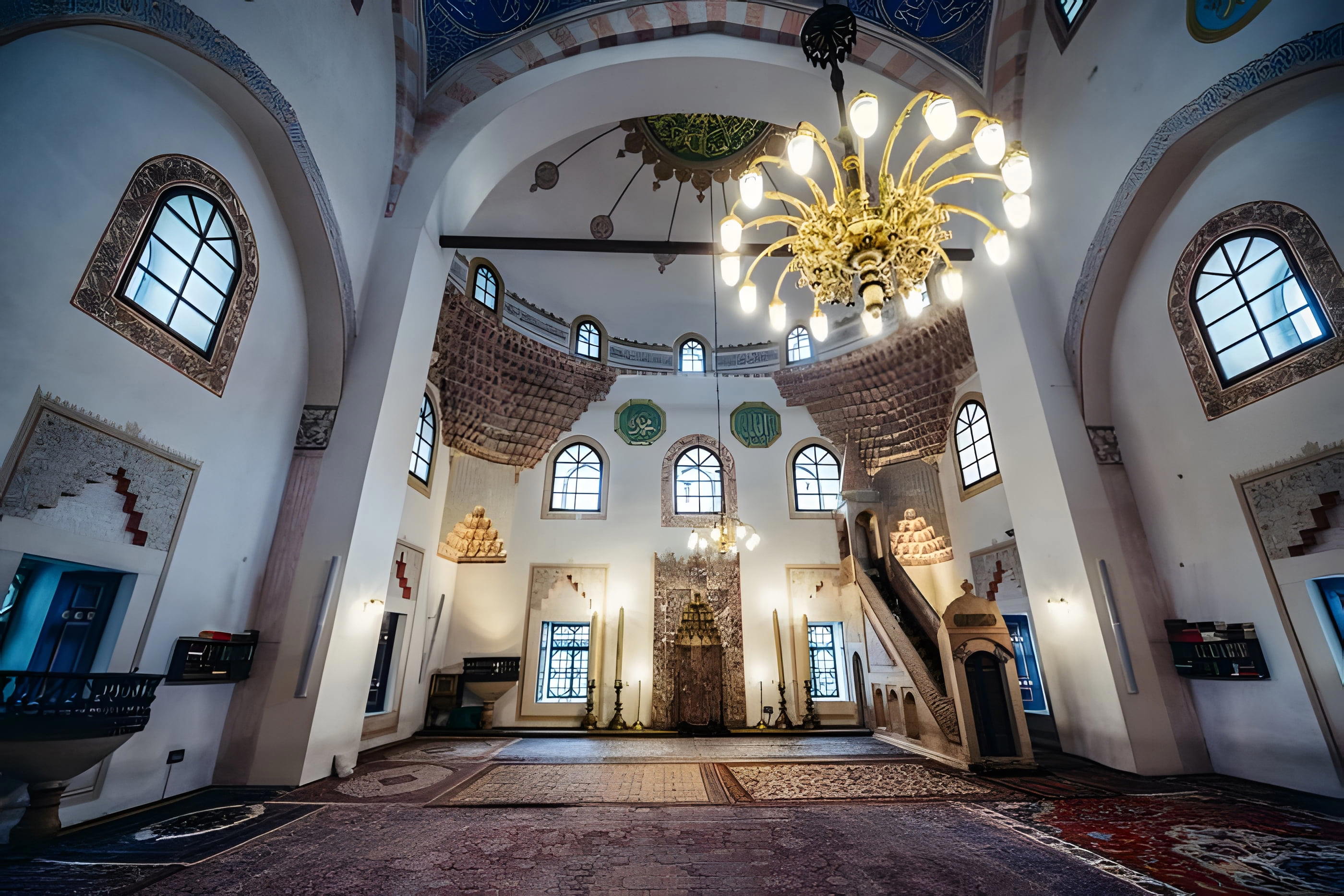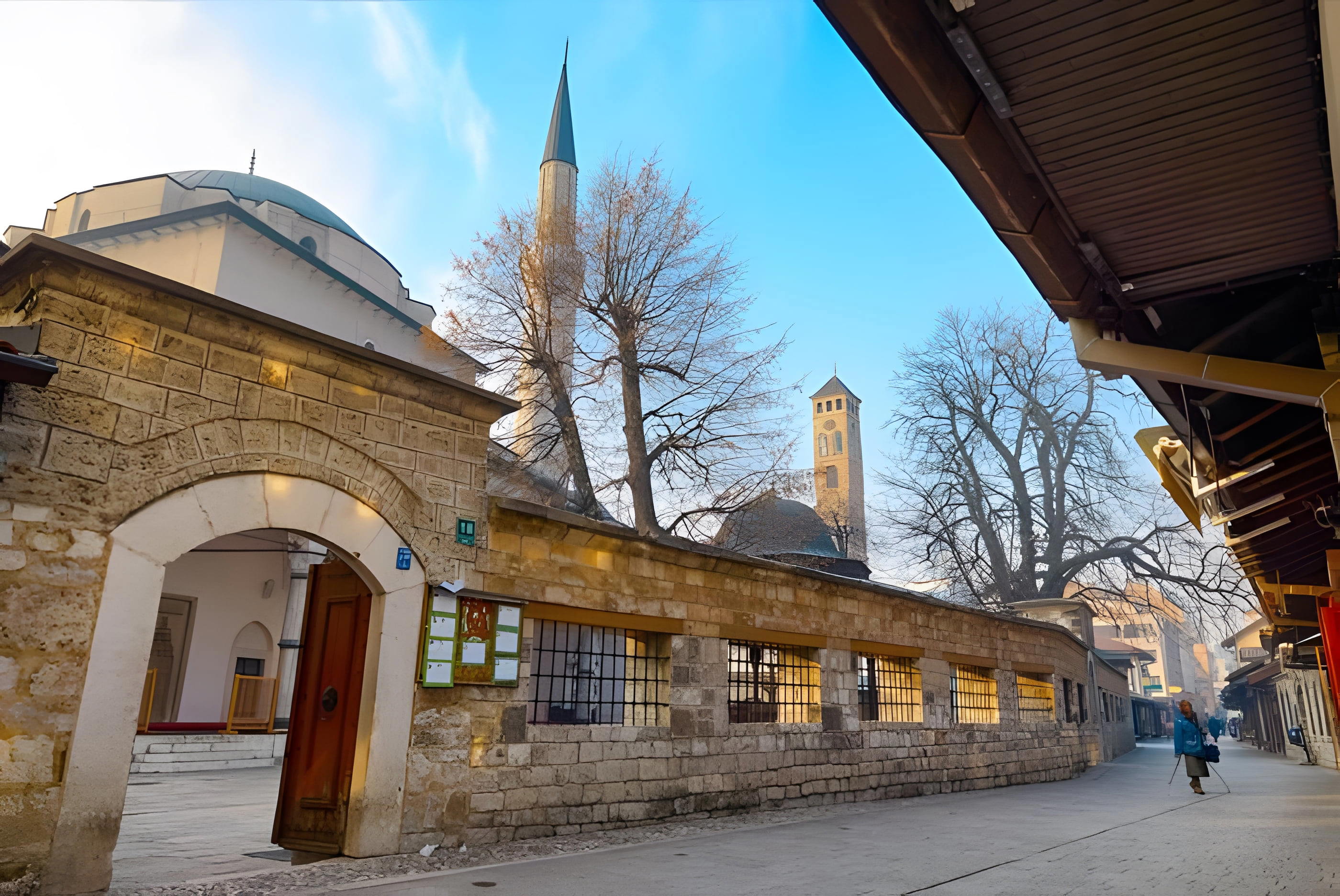 Mešita Gazi Husrev-beg je nejdůležitější stavbou z období osmanské nadvlády v Bosně a Hercegovině. Tato fascinující mešita s mořským stylem architektury má zajímavou historii sahající až do 16. století, kdy ji nechal postavit druhý osmanský guvernér Gazi Husrev-beg, podle kterého je pojmenována. V mešitě najdete ikonickou minaretu, která se vypíná do výšky 45 metrů a dominuje panoramatu města. Uvnitř návštěvníci obdivují unikátní klenutou halu s symetrickými proporcemi a bohatou výzdobou, včetně historických soch a uměleckých děl. V centrálním dvorním nádvoří najdete malebnou fontánu obklopenou zelenými kaštanovými stromy.