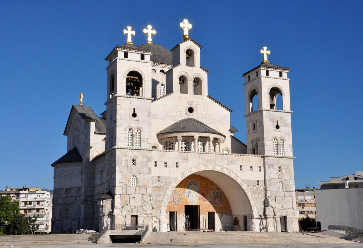 Katedrála Kristova Vzkříšení v Podgorici je impozantním pravoslavným chrámem, jehož stavba trvala 20 let. Vyniká svým velkým kupolem, bílými kamennými věžemi a zlatými kříži. Fasáda je neobvykle kontrastní, s hrubě opracovaným kamenem a složitě vyřezávanými detaily. Uvnitř září obrovské lustry proti překrásnému pozadí z pozlacených fresk. Zajímavostí je kontroverzní obraz v apsidě nad vstupem, na němž jsou vyobrazeni Tito, Karl Marx a Friedrich Engels hořící v pekle.