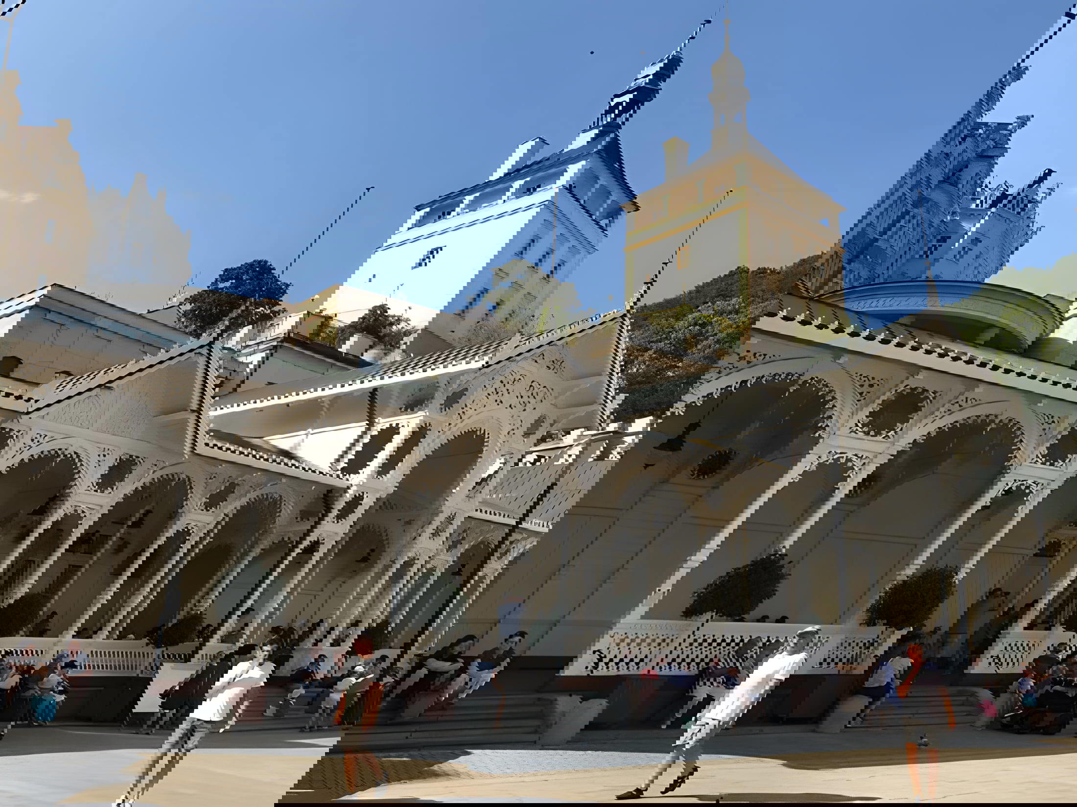Tržní kolonáda v Karlových Varech je jedinou kolonádou města vyrobenou z dřeva. Tento krásný neoklasicistní komplex pochází z 80. let 19. století a byl dílem slavné vídeňské architektonické firmy Fellner & Helmer. Nad pramenem Karla IV je umístěn bronzový panel, znázorňující objevení horkých pramenů císařem Karlem IV. ve 14. století.