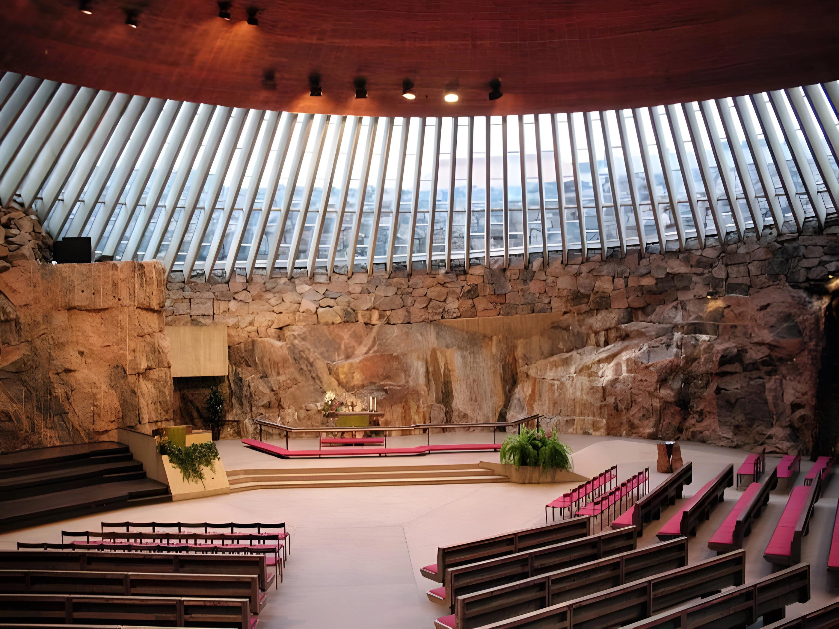 Kostel Temppeliaukion je vytesaný do pevného kamene s kopulí potaženou mědí. Navržen byl Timem a Tuomo Suomalainenem v roce 1969. Akustika místa je výjimečná a konají se zde pravidelné koncerty. Otevírací doba se liší v závislosti na událostech a ročních obdobích, proto si před návštěvou zkontrolujte online.
