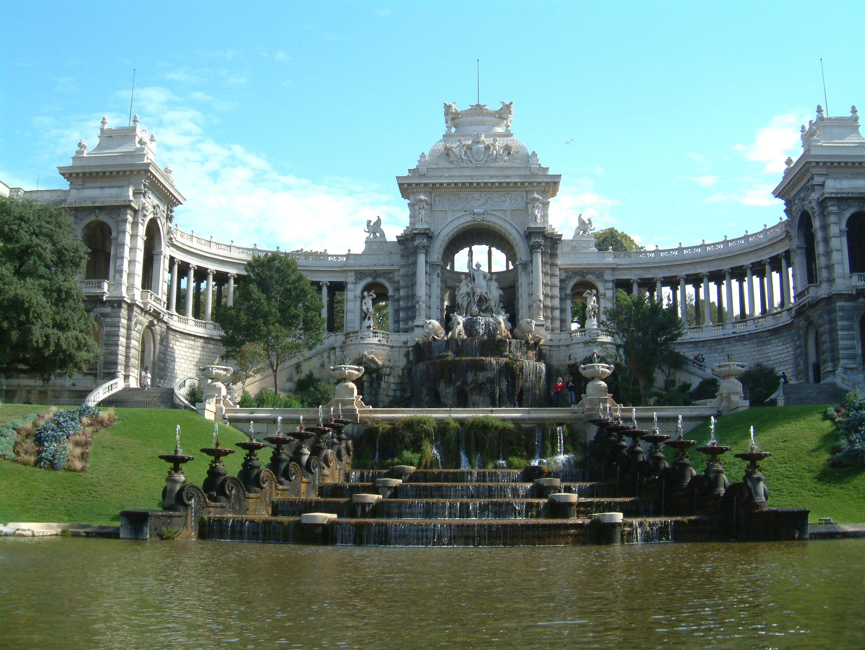 V Marseille si rozhodně nenechte ujít "Palais Longchamp". Tato historická památka s nádherným parkem v okolí byla postavena jako památník za úspěšným přivedením pitné vody do města. Projekt začal v roce 1835, kdy postihla Marseille epidemie cholery. Voda byla přivedena do Marseille přes 18 akvaduktů z řeky Durance. Architektem památkíku Palais Longchamp je Henry Espérandieu - slavný stavitel baziliky Notre-Dame. Palais Longchamp je kolonádou se dvěma muzei, sochami a fontánou.