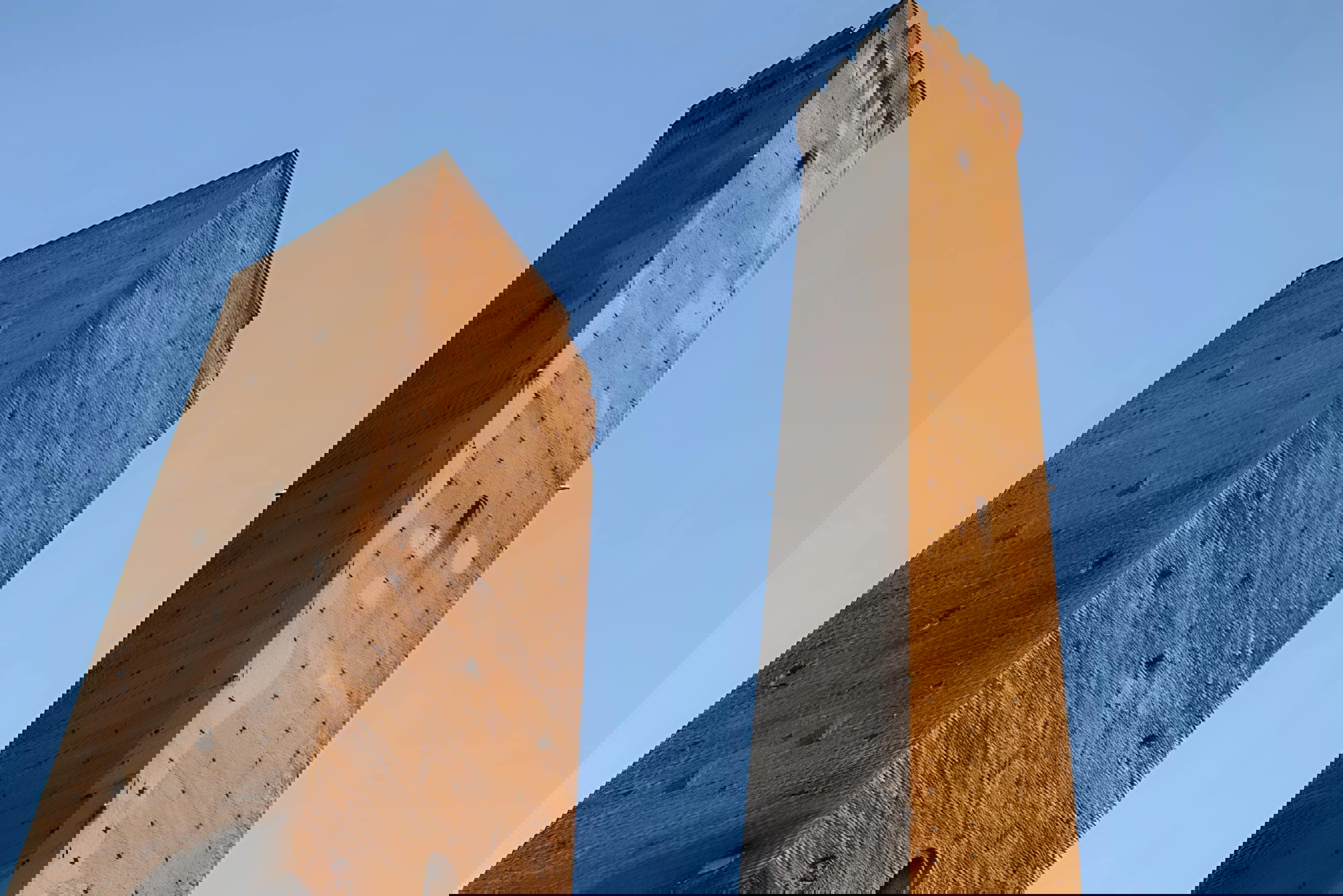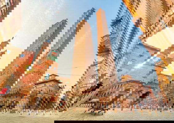 Symbolem Bologni jsou tzv. Dvě věže, které stojí v srdci města. Nejvyšší a nejznámější boloňskou věží je veřejně přístupná, devadesát sedm metrů vysoká Torre degli Asinelli. Věže byly postaveny ve středověku, plnily obrannou funkci a zároveň reprezentovaly společenskou prestiž rodu, který je nechal postavit. Názvy jsou odvozeny od jmen rodin, které je v letech 1109 až 1119 nechaly postavit.