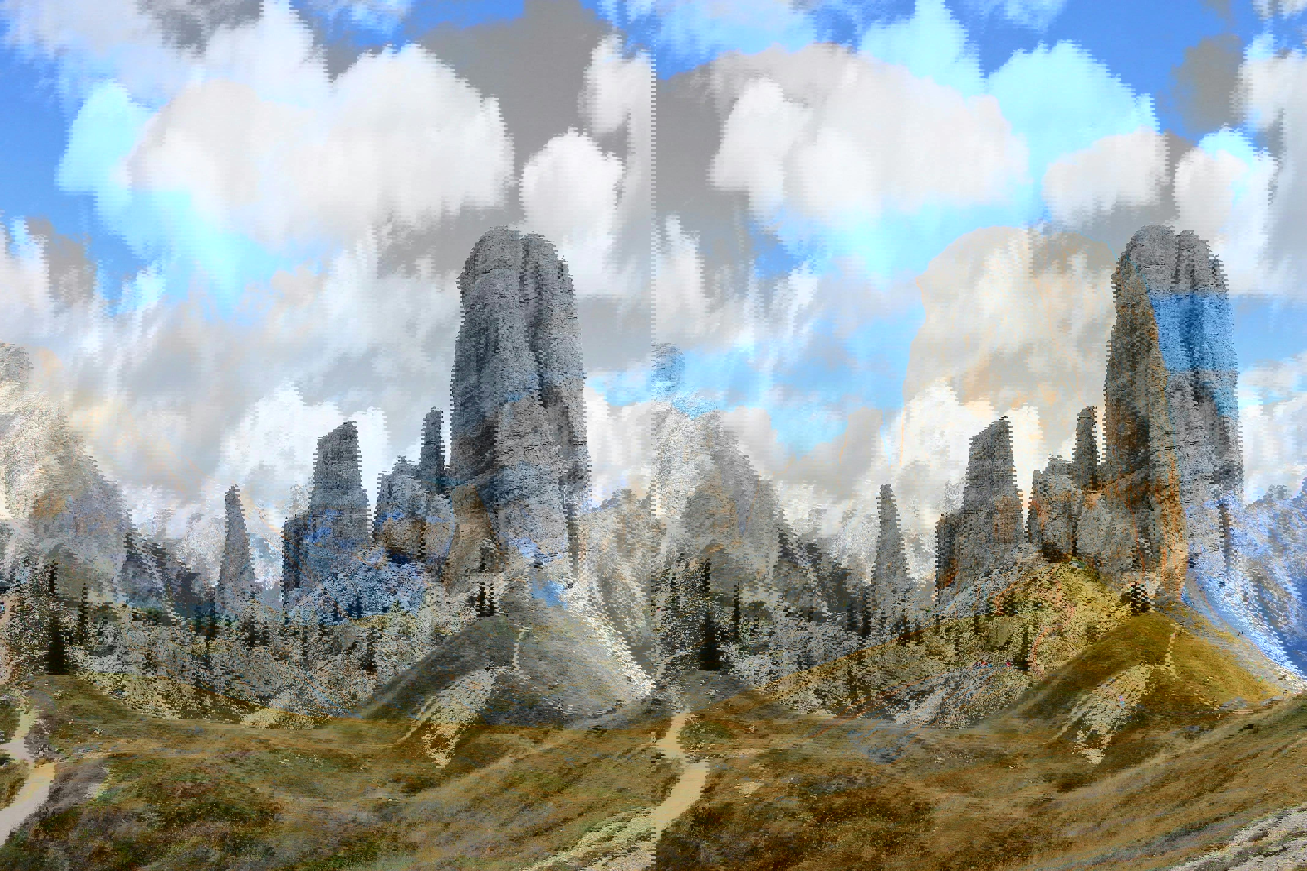Cinque Torri, což v italštině znamená "Pět věží", je skupina skalních věží nacházející se v regionu Dolomit, v blízkosti obce Cortina d'Ampezzo v severní Itálii. Tyto impozantní skalní formace jsou jedním z nejznámějších geologických útvarů v Dolomitech a oblíbeným cílem pro horolezce, turisty a milovníky přírodních krás. Cinque Torri jsou charakteristické svou skalnatou siluetou a unikátními tvary, které se vynořují z okolního horského terénu. Tvoří je několik vysokých skalních věží, které vytvářejí dramatický kontrast s oblohou a okolní krajinou. Pro horolezce představují Cinque Torri výzvu v podobě různých horolezeckých cest a tras různých obtížností. Tyto skalní věže nabízejí širokou škálu možností pro horolezecké dobrodružství a jsou oblíbeným tréninkovým terénem pro zkušené horolezce i začátečníky. Pro turisty a milovníky přírody jsou Cinque Torri malebným cílem pro procházky a fotografování. Okolní horské stezky a vyhlídky nabízejí nádherné výhledy na Cinque Torri a okolní Dolomity, což činí z tohoto místa ideální lokalitu pro odpočinek a obdivování přírodních krás.