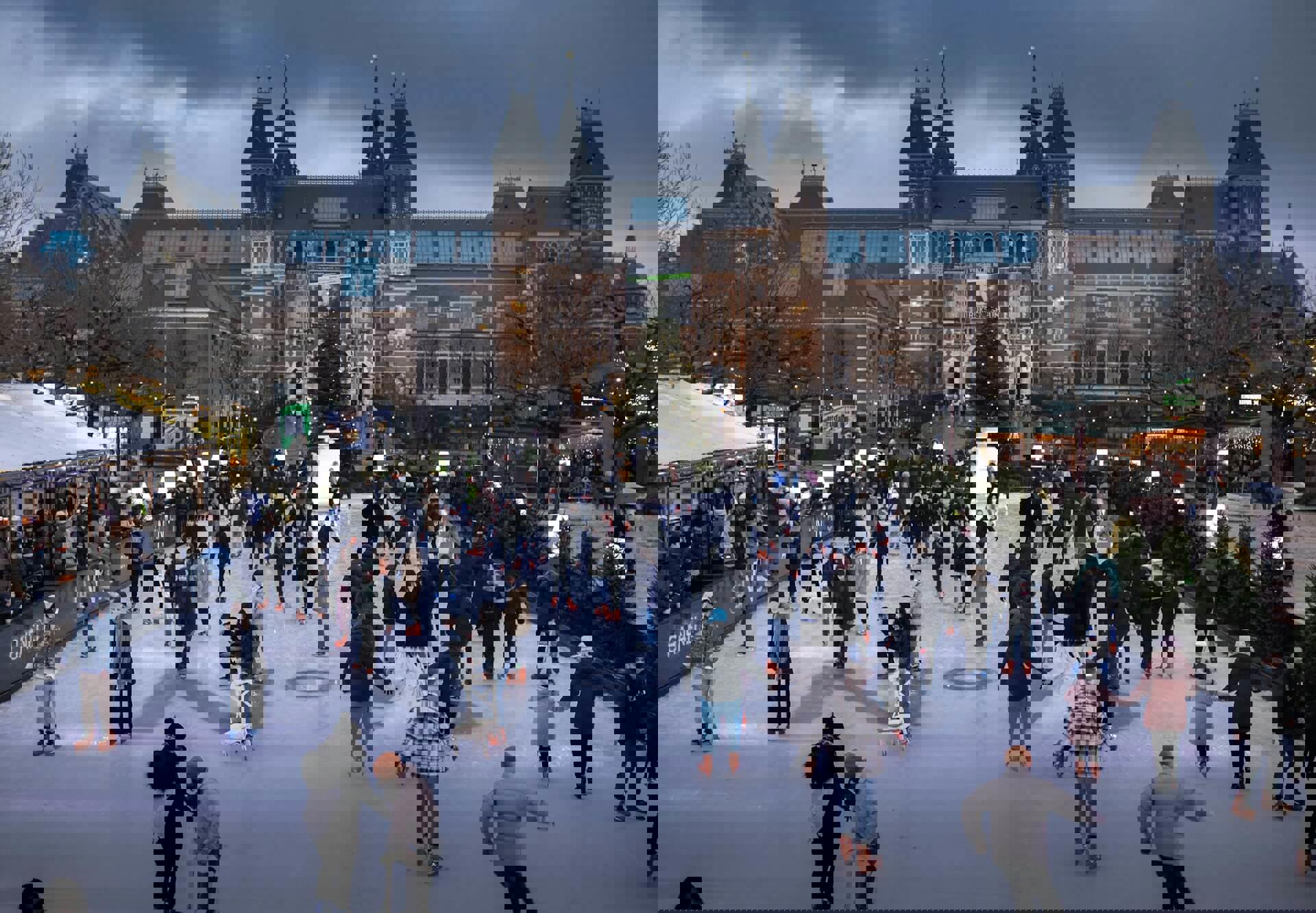 Muzejní náměstí, jedno z nejvýznamnějších míst v Amsterdamu, se během vánočního období promění v kouzelnou vánoční vesničku. Trhy na Museumplein nabízejí širokou škálu stánků s tradičními i moderními pokrmy, řemeslnými výrobky, dárky a vánočními dekoracemi. Můžete zde ochutnat vynikající vánoční speciality, jako jsou poffertjes (holandské mini palačinky), stroopwafels (karamelové oplatky) a samozřejmě vánoční punč a svařené víno. Náměstí je krásně osvětlené, najdeme tu také kluziště a často zde probíhají živá vystoupení a kulturní programy.