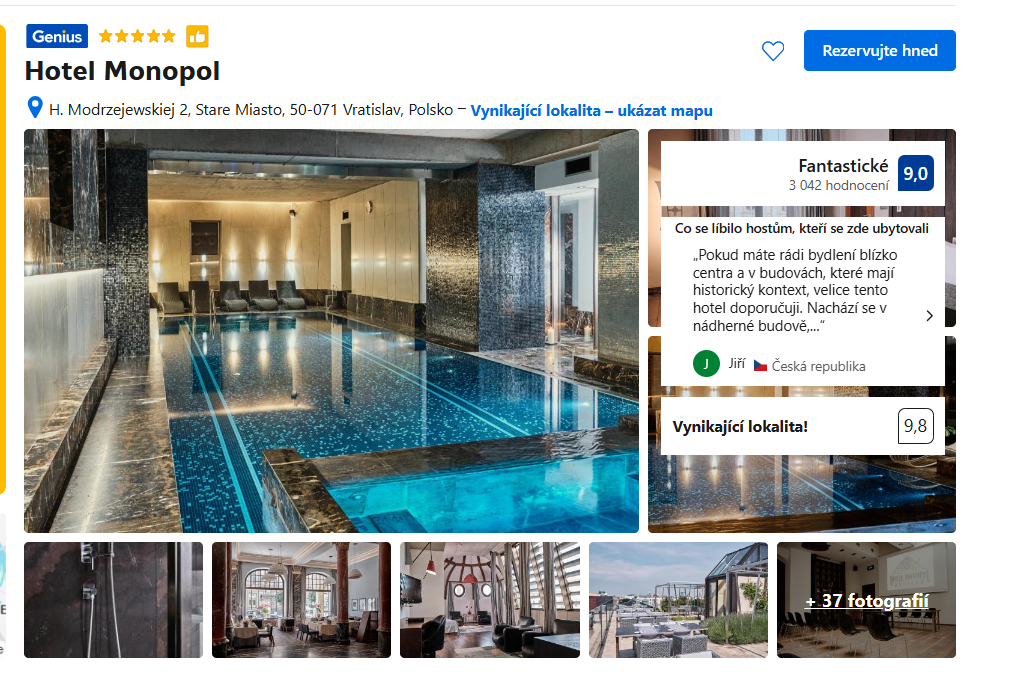 Jeden z nejprestižnějších hotelů ve Wroclawi, umístěný v historické budově ze začátku 20. století, známý pro svou luxusní atmosféru a výjimečný servis.