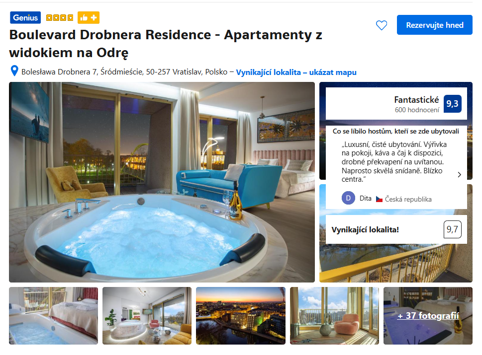 Tyto apartmány nabízejí elegantní ubytování s úchvatným výhledem na řeku Odru, ideální pro hosty hledající kombinaci komfortu a krásného výhledu. Pro dokonalý relax si můžete připlatit za pokoj s vířivkou.