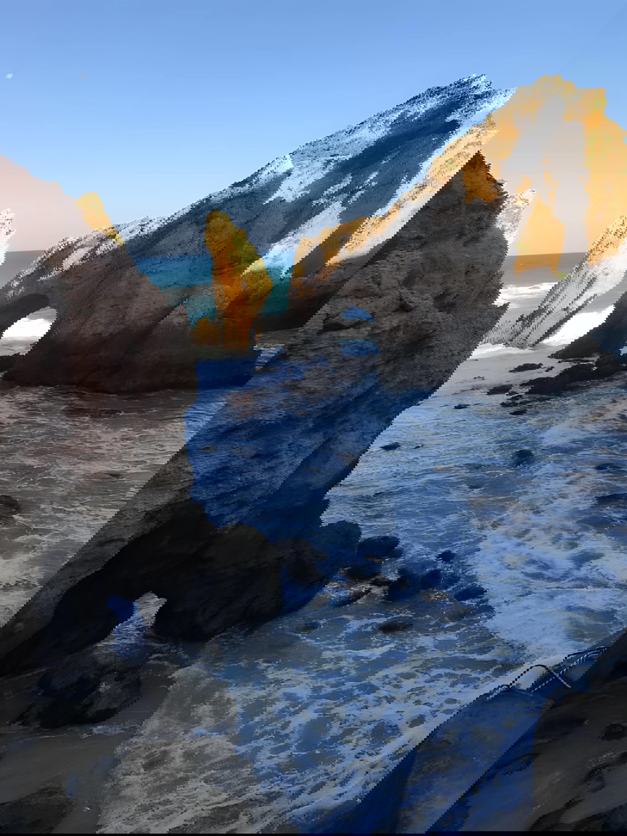 Skalní útesy podél pobřezí blízko města Lagos.
