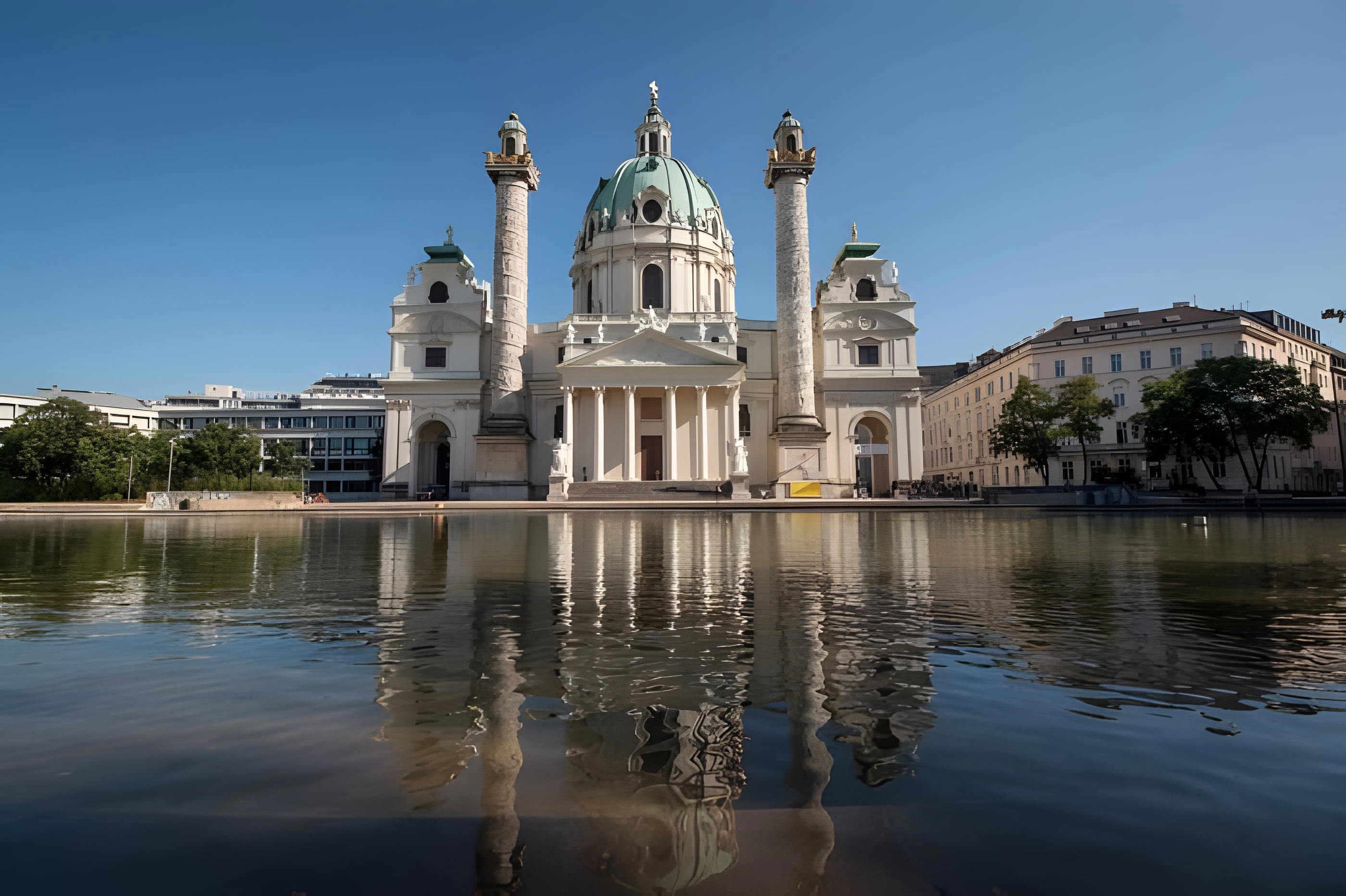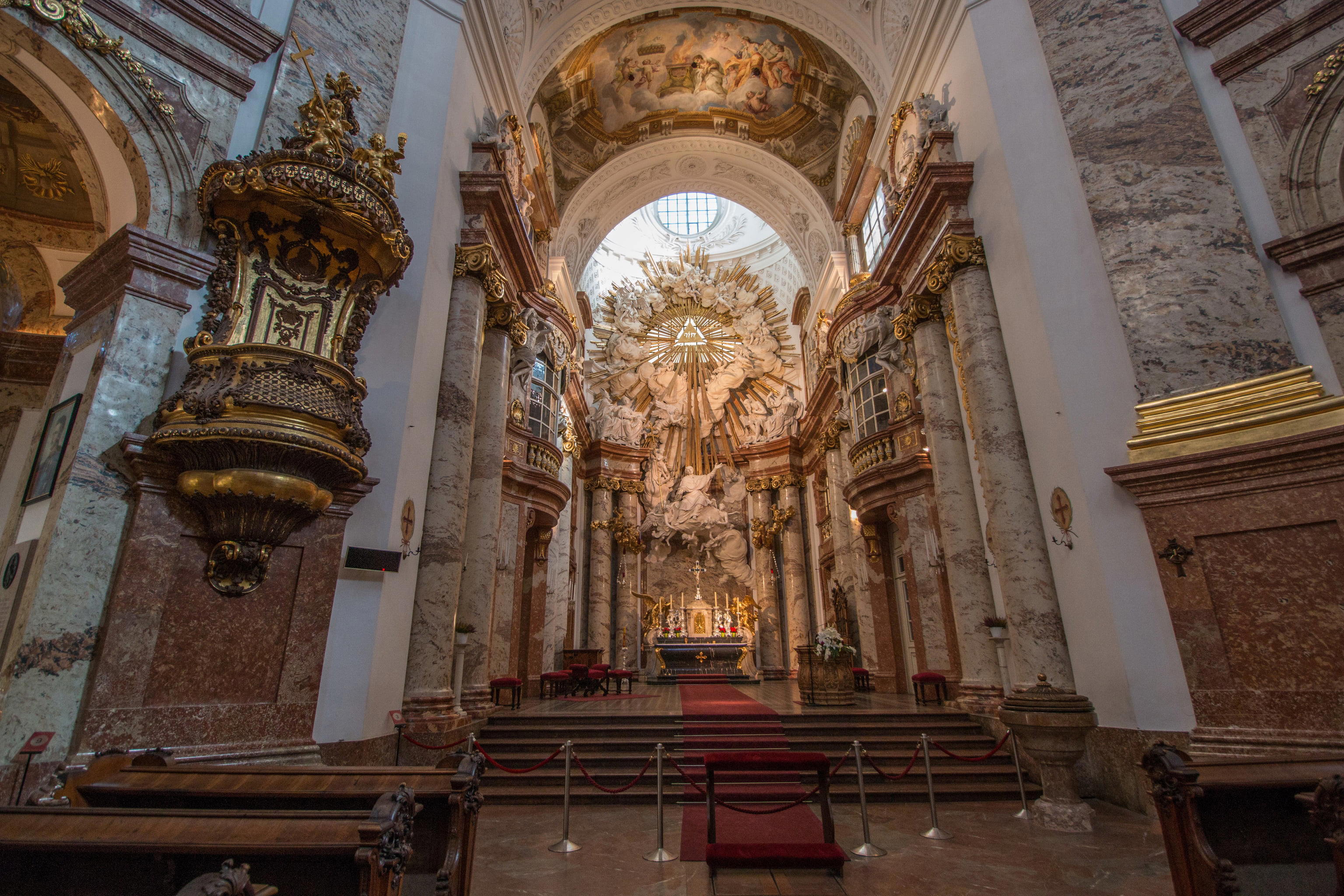 Kostel svatého Karla Boromejského, nebo také Karlskirche, je jedním z nejvýznamnějších barokních kostelů ve Vídni. Jeho nádherná fasáda a 72 metrů vysoká kopule jsou neuvěřitelné umělecké kousky, které zaujmou každého návštěvníka. Uvnitř kostela se nachází krásné fresky a dekorace, které stojí za prohlédnutí. Navíc můžete využít výtah a vystoupat až na vrchol kopule, odkud se nabízí nádherný výhled na Vídeň. Kostel je zasvěcen svatému Karlu Boromejskému, patronovi habsburského císaře.