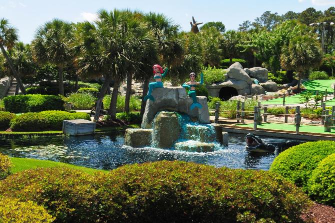 Užijte si dobrodružství na golfovém hřišti Captain Hooks Adventure Golf v Myrtle Beach! Tento zábavný park nabízí 36 jamkové golfové hřiště inspirované Piráty z Karibiku.